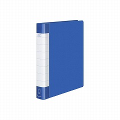 たわみにくい自立性のある貼り表紙タイプのクリヤーブック差替式です。落としてもとじ具が開きにくいスーパーロック機構。リフィルは中紙なしになります。
