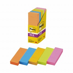 つきにくかった樹脂面にもしっかり貼れて、きれいにはがせる強粘着タイプのポストイット。一言メモ、伝言メモ、見出しにおすすめのサイズ。見落とし防止に役立つネオンカラー。各色1冊の5冊パック。