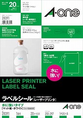 レーザープリンタ(LBP)で印刷できる、水に強い耐水紙素材のラベルシールです。ラベル表面と側面に耐水性がありトナーがにじみにくい。自由に切って使えます。パッケージ、ラッピングシール作成に。