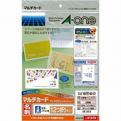 各種プリンタ兼用で印刷できる、上質紙素材の名刺用紙です。印刷後、ミシン目に沿って山折り谷折りするだけで切り離すことができます。折りたたむと名刺サイズになるポイントカード作成に便利なカード。