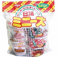 ●カップヌードルミニ:163kcal、カップヌードルカレーミニ:207kcal、どん兵衛きつね東日本風ミニ:183kcal、どん兵衛天そば東日本風ミニ:218kcal、ミニチキンラーメン:166kcall