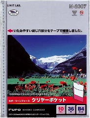 B4サイズのクリヤーポケットです。傷みやすい綴じ穴部分をテープで補強してます。目にやさしいエンボス加工