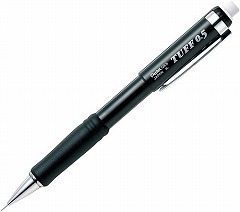 黒く、色がなめらかな濃いB芯を内蔵。手になじみ、筆記感の良いシリコングリップ。長さ30mmの回転式大型消しゴム付き。