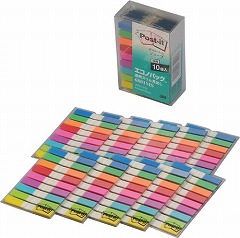 6mm幅のスリムサイズのフィルムふせん。貼っても下の文字などが透けて見え、また貼った上から字を書くこともできる、つや消し加工フィルムの見出しです。色数が多く、色分けにも便利です。お得な10個セット。