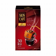 簡易ドリップコーヒーのパイオニアであるモンカフェ。注ぎ口が広がり、いれやすく、さらにおいしく。熟した果実を思わせる独特の甘い香りと深みのあるコクをもつブレンド。