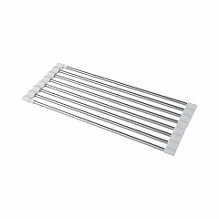 シンクスペースを有効活用できる。シンクに合わせて40から60cmに伸縮可能。たためるので、場所を取らずスリムに収納できる。サイドは滑りにくいフレームになっていて、通気性が良い波状になっている。