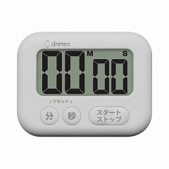 大きな数字で時間をはっきり表示のキッチンタイマー。「分」「秒」ボタンでかんたんセット。もとのセット時間にもどるリピート機能。立てかけスタンド付