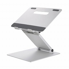 ノートパソコンを約40cmの高さまで上げられて、スタンディングワークが可能なノートパソコンスタンドです。アームの長さやスタンドの角度は無段階に調整でき、座っても立っても快適な高さ・角度で使用できます。