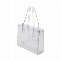 職場・社内用におすすめのビニールバッグ。留め具やポケット付きという特徴に加えて、持ち手が長く肩に掛けられるから使いやすい。透明で中身がクリアに見えるからセキュリティ対策にも最適。