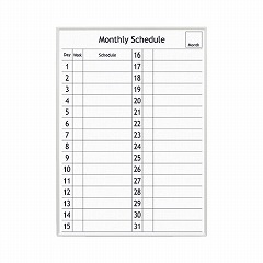 裏面マグネットが付いた簡易型の月間予定表です。スチール面に直接設置できたり吊り紐でも設置が可能です。