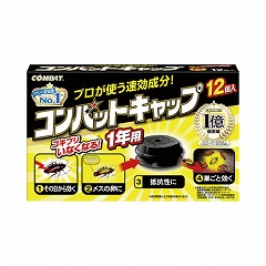 小型でも広範囲に、プロが使う即効成分配合のゴキブリ用ベイト剤。抵抗性ゴキブリにも効く。タテでも貼れるシール付きで掃除の邪魔にならない。効果は約1年。12個入。