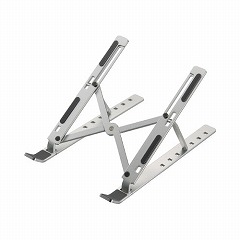 折りたためるコンパクトなノートパソコンスタンド。7段階の高さ・角度調整が可能。持ち運びに便利な収納袋付き!