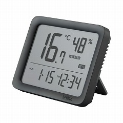 暑さ指数と乾燥指数で熱中症/季節性インフルエンザになりやすい室内環境をお知らせ。大きな表示で見やすい、目覚ましアラーム付き。シンプルでインテリアに馴染むデザイン。設置場所を選ばない便利な3Way。
