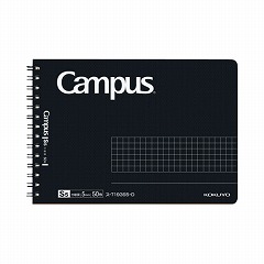 タブレット端末やパソコン前の省スペースで使えるハーフサイズのキャンパスノート。図や表が書きやすい5mm方眼罫です。ビジネスシーンにぴったりな落ち着いたデザインと質感です。