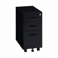 低価格でお買い得のスチールデスクワゴンの幅スリムタイプ。カギ付き、全段フルオープン引出で下段引出はA4ファイルが収納できます。