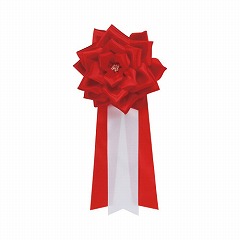 祝賀会・周年行事・式典・選挙・入学式・卒業式・運動会などのイベントに。来賓者や主催者が胸に付けるバラの花の徽章リボン。花とタレがセットになっています。