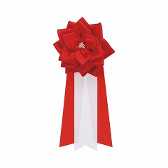 祝賀会・周年行事・式典・選挙・入学式・卒業式・運動会などのイベントに。来賓者や主催者が胸に付けるバラの花の徽章リボン。花とタレがセットになっています。