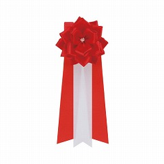 祝賀会・周年行事・式典・選挙・入学式・卒業式・運動会などのイベントに。来賓者や主催者が胸に付けるバラの花の徽章リボン。花とタレがセットになっています。