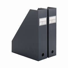 吉川国工業所との共同開発!カウネットが回収した使用済みのプラスチックを一部原料として使用したファイルボックスです。ワイドサイズの異なる3個組で、タテ置き・ヨコ置きどちらでも使えます。