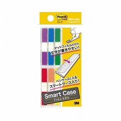 6mm幅のスリムサイズのフィルムふせん。ペンケースにも収納しやすい細長いケース入。貼っても下の文字などが透けて見え、貼った上から字を書くこともできる、つや消し加工フィルムの見出しです。色分けにも便利。