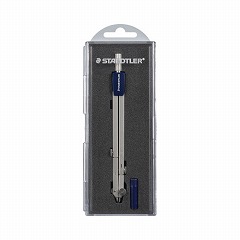 延長棒内蔵脚により大きな円も描けるベーシックコンパス。両脚が折れる両脚式のため針と筆記部を紙面に対して垂直にすることができ、安定して円を描く事ができます。
