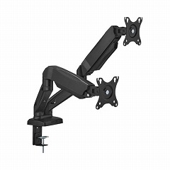 2画面クランプ。自在に動かせるメカニカルスプリング式、画面の前後移動ができる4軸タイプ、対応サイズ17から32インチ、耐荷重2から9kg、縦位置での使用も可能。