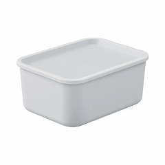 シンプルで丸みのあるやわらかなデザインのフタ付き積み重ねBOXです。フタにふちがあるので、積み重ねても安定感があります。フタはトレーとして使用でき、小物も置けます。丸洗いができるので衛生的です。
