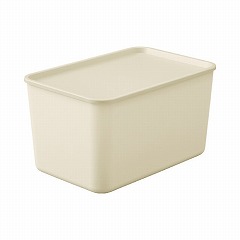 シンプルで丸みのあるやわらかなデザインのフタ付き積み重ねBOXです。フタにふちがあるので、積み重ねても安定感があります。フタはトレーとして使用でき、小物も置けます。丸洗いができるので衛生的です。