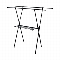 干すものに合わせて幅や高さを調整できる室内物干しです。どんなインテリアにもなじみやすいシックなデザインとなっております。使用しない時はスリムに収納もできます。