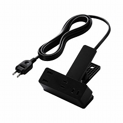 クリップ機構付きUSB-A電源タップ。常設できない場所に一時的に電源を設置可能。調理機器やテレワークに便利。コード約2.5m。
