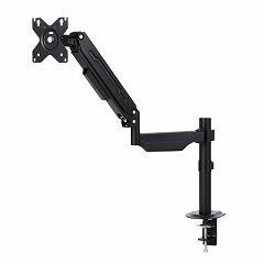 モニターの位置を自由に調節でき、デスクのスペースを有効活用!17ー32インチまでのモニターに対応する、支柱付きのガススプリング式のシングルモニターアームです。