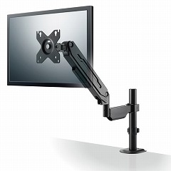 モニターの位置を自由に調節でき、デスクのスペースを有効活用!17ー32インチまでのモニターに対応する、支柱付きのガススプリング式のシングルモニターアームです。