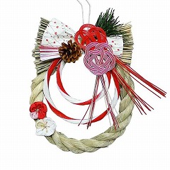 国産素材の紅白水引とつまみ細工をあしらったリース型のかわいらしい正月飾り。ひとつひとつ丁寧に仕上げたお飾りです。玄関はもちろん、室内のお正月を飾るインテリアとしても最適です。