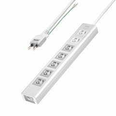 3P抜け止め7個口、5個口連動集中スイッチ、マグネット、シャッター付き、雷ガード付きタップ。2m。2Pスイングプラグ。