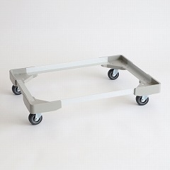 75Lのコンテナ用コンテナカート。アルミフレームだから丈夫で、耐荷重150kg。床に汚れがつきにくいエラストマーキャスター採用。安心安全の日本製。