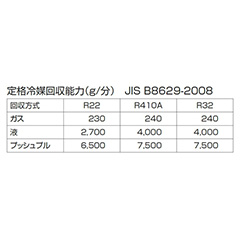 ●回収能力(R22)…230g/分(JIS B8629-2008による)