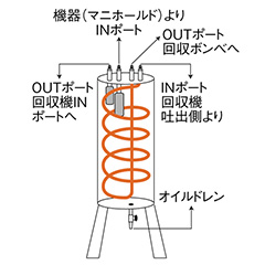 ●オイルセパレーター内で冷え込んだ回収フロンと回収機吐出側からの高温高圧フロンが熱交換され、スムーズな回収作業が行えます。