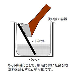 ●ネットを使うことで、刷毛についた余分な塗料を落とすことができます。