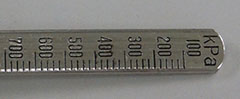 ●タイヤ圧が本体ゲージの目盛りにより測定できます。