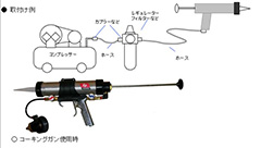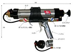 圧力調整と吹き付け距離の調整が可能で、ビード状・スプレー状・コーティング状の吹き付けパターンを調整できます