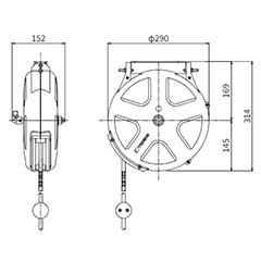 ●耐衝撃樹脂ボディによって、よりコンパクトにまとめ上げられたリールカバー。ホースの出し入れが容易にできる!