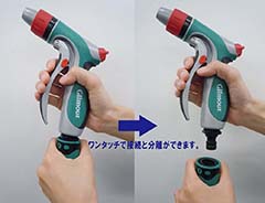 ●ホースとスプリンクラー、ノズル等に取付けることで脱着が容易になります。
