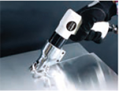 ●スチール・アルミ板など、鉄板用ハサミよりスピーディに直線切りできます