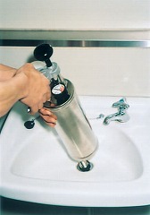 ポンプハンドルで空気を圧縮し、引金を引くだけでドレン洗浄ができます