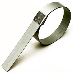 ●厚さ0.635mm ・幅9.5mm ・ステンレス(SUS201)のバンドの最小破断荷重は約405kg(900ポンド) となっています。(幅16mmのものも厚さが同じですので9.5mm幅のものと同じと考えてください。)