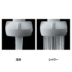 ●ヘッドを軽くまわすだけで泡沫とシャワーの切替えができます。