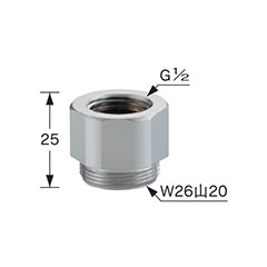 ●G1/2ネジ(散水栓、カップリング水栓、バルブ類)に、W26山20ネジのパイプを取付けるアダプター