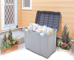 ベランダや軒下での多目的収納に便利なカギを付けられるタイプのストッカーです