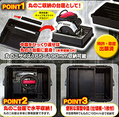●丸鋸収納可能。(丸鋸サイズ:165~190mm収納可能)