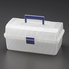 ●高耐衝撃性コーポリマー使用で強度は非常に高く、スライド式2段トレーで収納力を高めます。